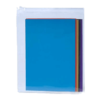 Los iPouches transparentes, de grado industrial, con respaldo adhesivo y cierre superior se adhieren a la superficie plana en un envase iCan™ para el almacenamiento seguro del contenido del envase, las hojas MSDS y la codificación de color de lubricación adicional por el sistema iTag.